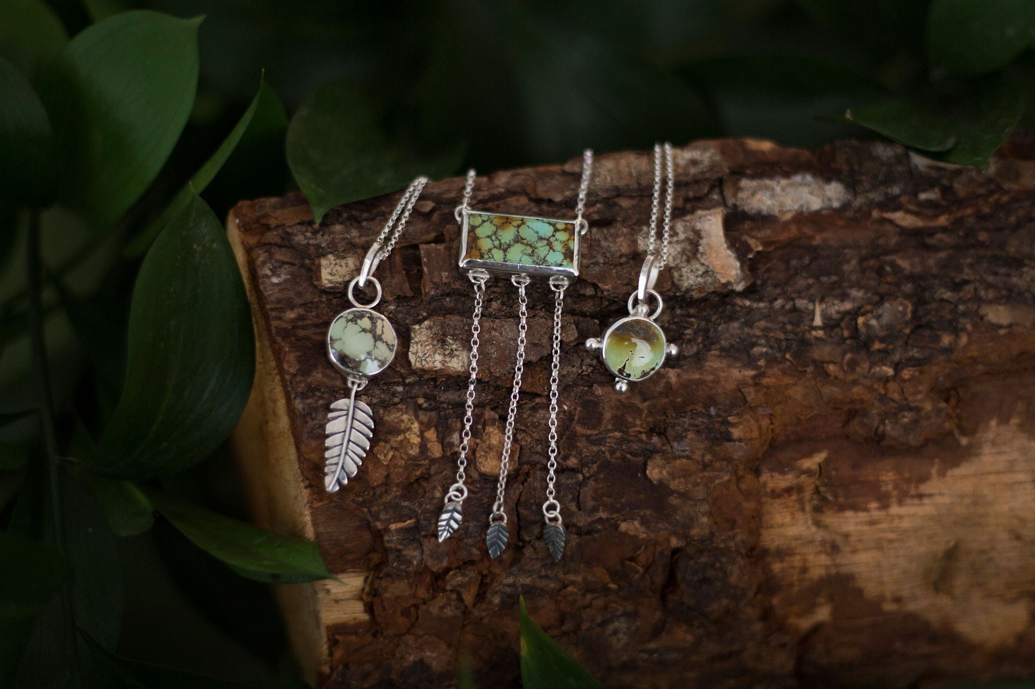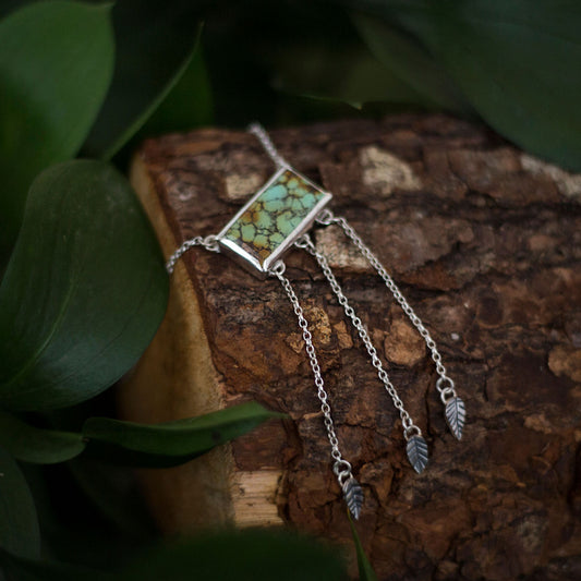 Sunroad Talisman - Treasure Mountain Turquoise Leaf Necklace in Sterling Silver