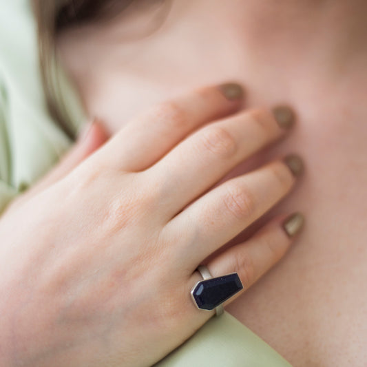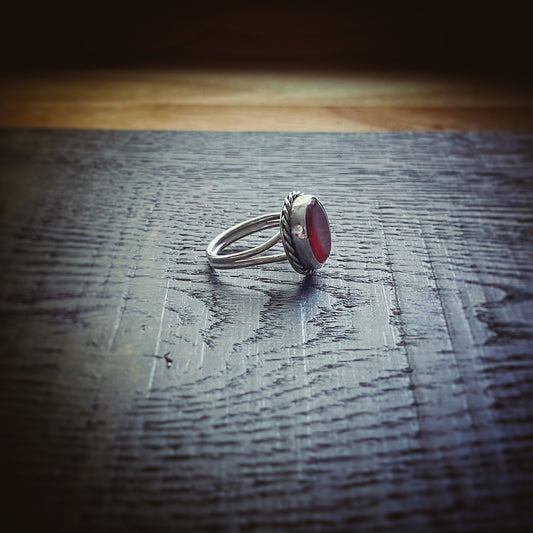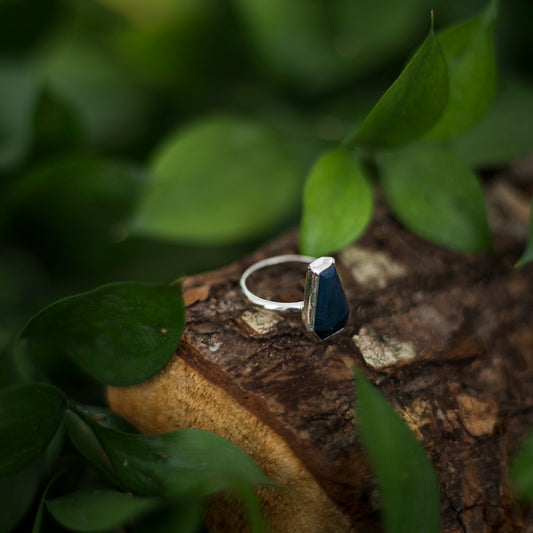 Chrysoprase Teardrop Ring – Silver Triple Band