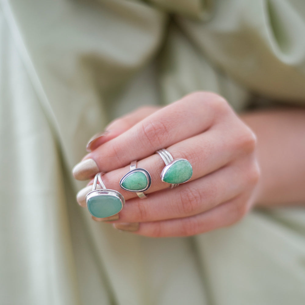 Chrysoprase Teardrop Ring – Silver Triple Band